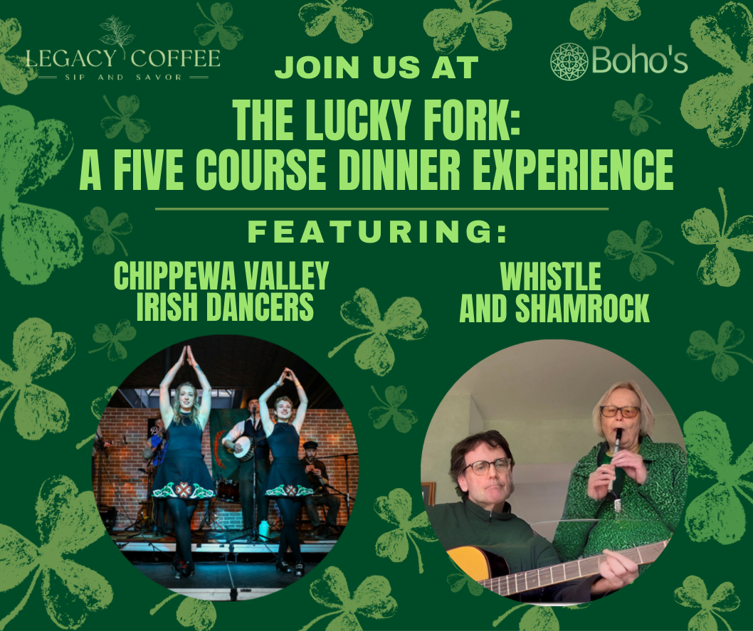 And as if the food and drink weren’t enough, we’ll have lively performances by the Chippewa Valley Irish Dancers, their feet flyin’ faster than a wink and their steps sharp as a drumbeat on a parade mornin’. You’ll feel the rhythm in your chest and the joy of it clear to your bones.